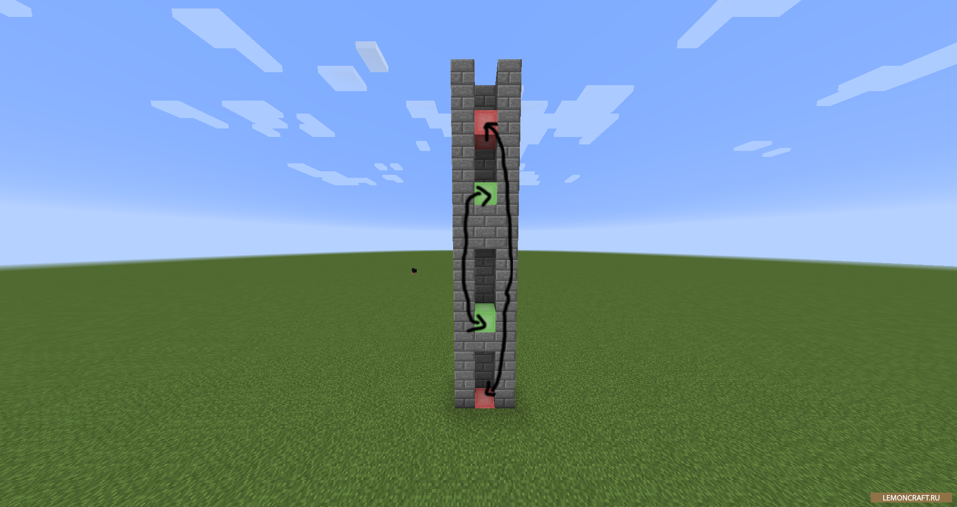 Мод OpenBlocks Elevator дает возможность создать обычный лифт, но при этом не совсем обычный. Этот лифт не передвигает вас а телепортирует с одного этажа на другой. Лифт состоит всего из одного блока и доступен в различных цветовых решениях.