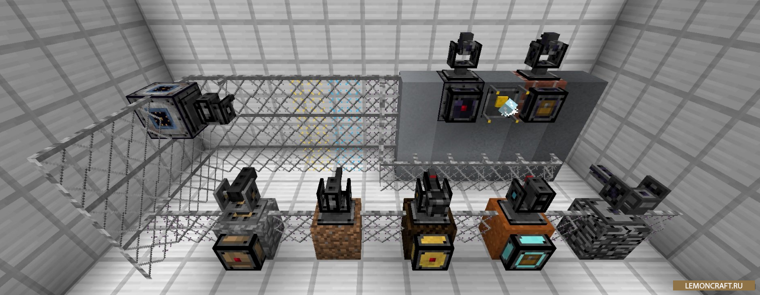 Мод OpenModularTurrets предназначен для обороны вашего имущество от враждебных мобов и других игроков. Турели не автоматические, нужно указывать в кого стрелять, так что смотрите не ошибитесь и не подстрелите друга. В моде присутствуют 10 разновидностей терелей. Есть тетрадь смерти, что очень прикольно, если занести туда игрок, то он не сможет подойти к вашему имуществу, так как будет сразу же обстрелян.