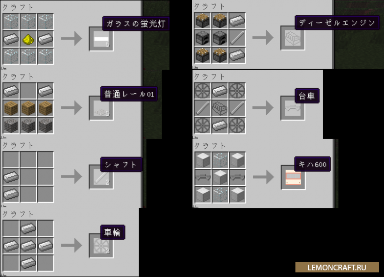 Мод Real Train позволит вам создать настоящее железнодорожное сообщение в вашем мире майнкрафт. Мод имеет огромные возможности для создания железной дороги и поездов, но при этом он достаточно сложный. Мод добавит можество блоков для создания железнодорожных станций, рельсов, поездов и декораций связанных с железной дорогой. Кроме этого, непонятно по каким причинам, японский авто добавил танк, истребитель, корабль и несколько видов оружия, наверное хотел придать моду хардкора.