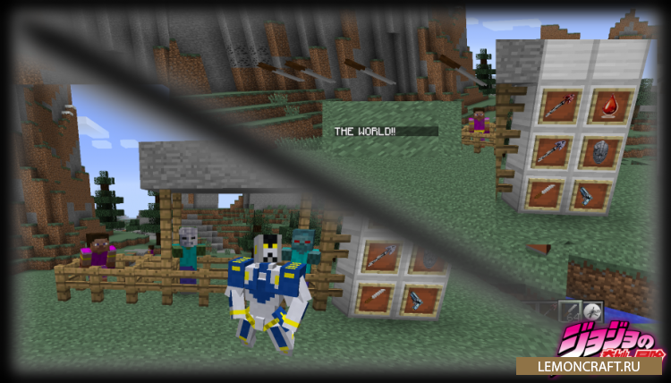 Steve's Bizarre Adventure добавит в игру некоторые аспекты из механки из аниме и манги JoJo's Bizarre Adventure, такие как вампиры, обладателей техники Хамон, а также боевые способности - Станды. На данный момент, в моде представлены 10 Стандов, которые смогут заменить игроку мечи, а иногда и кирки с луками. Но особо не обольщайтесь: Станды пожирают огромное количество еды, так что запаситесь едой, соберитесь с духом, и в бой!