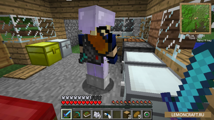 Мод на инструмент на спине Back Tools добавляет в игру возможность повесить последний используемый инструмент себе на спину. Данная операция произойдет, как только вы смените слот, последний инструмент который вы держали в руке, окажется у вас на спине. Мод не несет в себе никакой полезной функции, но в качестве анимационного пойдет.