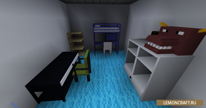 Мод на декоративные блоки Mo'Deco добавит в игру порядка 38 новых декоративных блоков с помощью которых вы сможете декорировать спальню, кладовую, гостиную, да и вообще, практически весь дом. В игре появятся несколько видов столов, журнальные столики, шкафы, лавки для улицы, кровать в два этажа, пианино, стулья. По технике вы сможете установить роутер, кассовый аппарат, огромный телевизор, компьютер. Так же в игре появятся несколько новых светильников, чучело крокодила, шкура медведя, которую можно положить на пол, снегоход, бургеры, средневековая баллиста.
