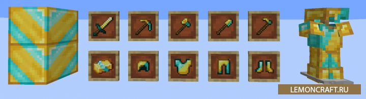 Мод на композитный материал Diamold добавит в игру новый материал в состав которого будут входить золото и алмазы. Все предметы созданные из нового материала будут иметь прочность алмазов и эффективность золота.